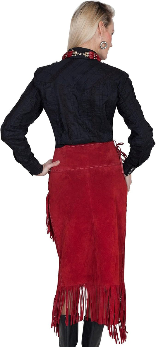 Women'S Asymmetrical Fringe Suede Leather Skirt - L659-19
